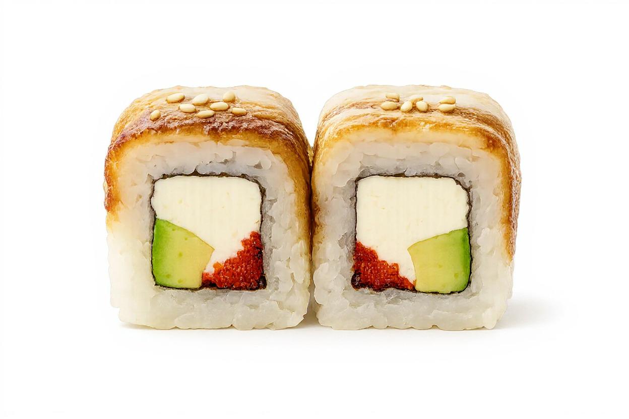 Искушение, перед которым невозможно устоять! ? Бархатный угорь, нежнейший сливочный сыр и искорки икры масаго создают взрыв вкуса. Сладковатый соус унаги и ароматный кунжут завершают эту симфонию. Подарите себе гастрономический экстаз! 8 шт. Состав: угорь, сливочный сыр, икра масаго, огурец, соус унаги, рис, нори. Вес: 230 г.
