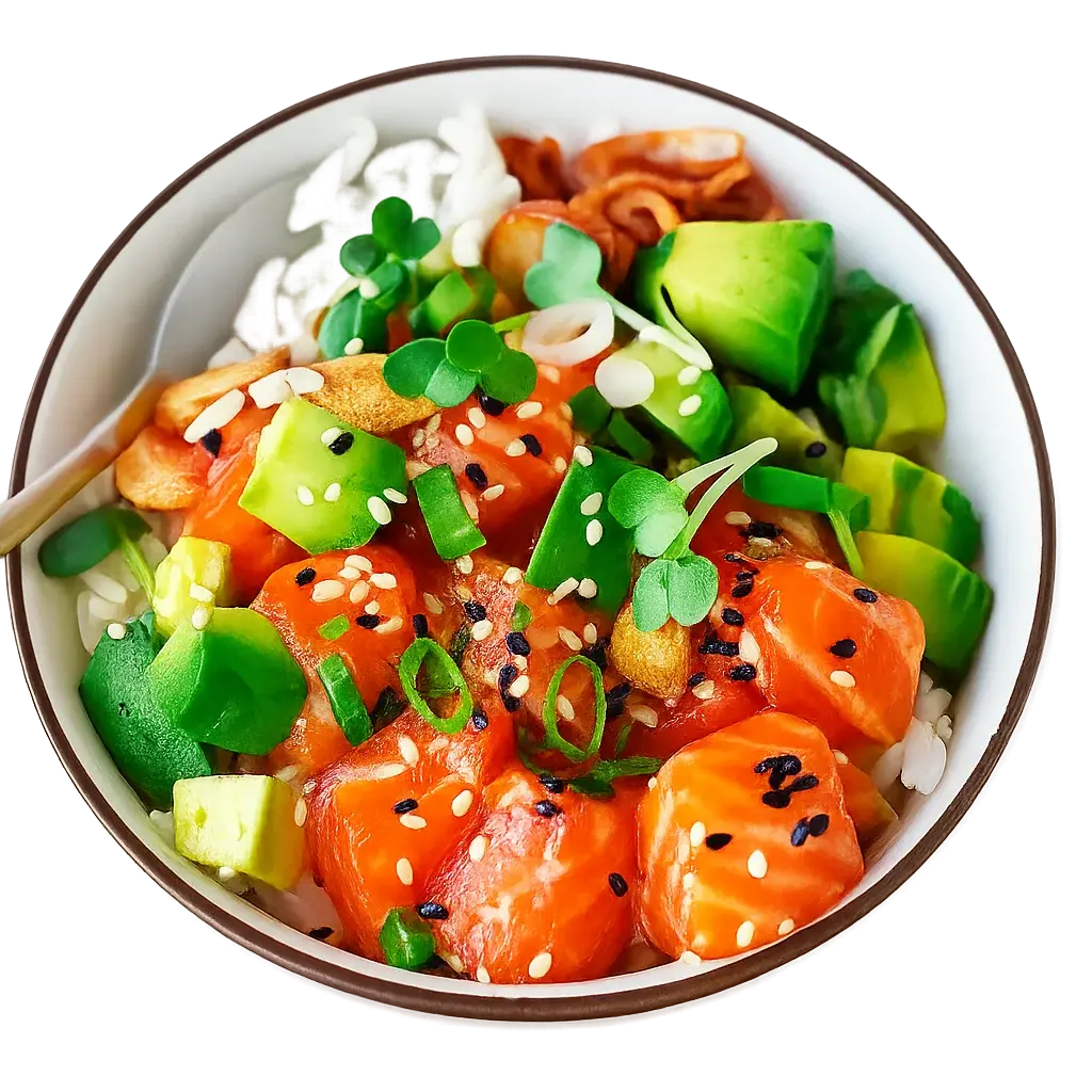 Состав: лосось, рис, свежий манго, бобы эдамаме, авокадо, кунжут, нори, чука водоросли, соус манго-чили, соус спайс.