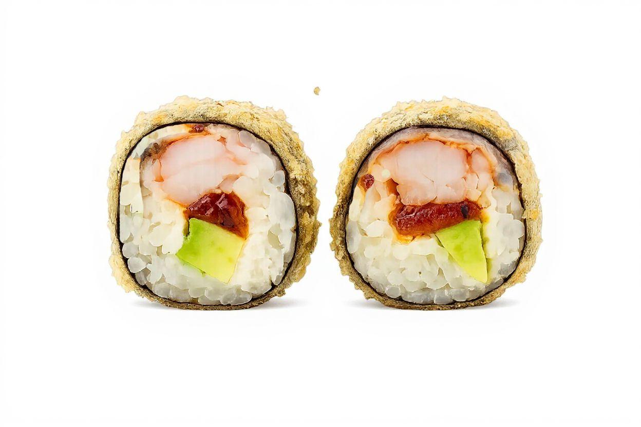 8 шт. Состав: креветка, угорь, сливочный сыр, авокадо, рис, нори, кунжут, кляр, сухари панко. Вес: 260 г.