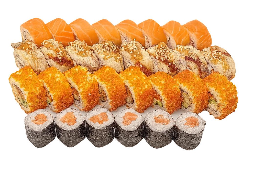 30 шт. Состав: филадельфия классическая; канадский; калифорния с лососем; мини ролл с лососем. Вес: 790 г.
