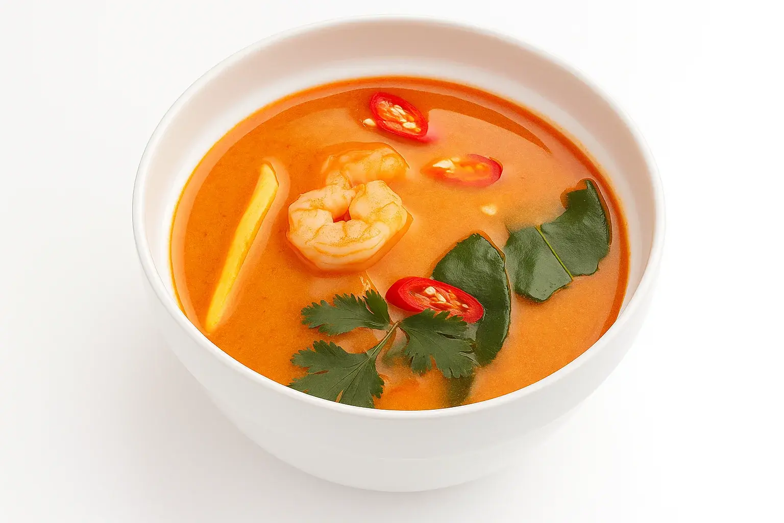 Средне острый кокосовый суп с креветками, лососем, мидиями, грибами и рисом. Вес: 430 г.