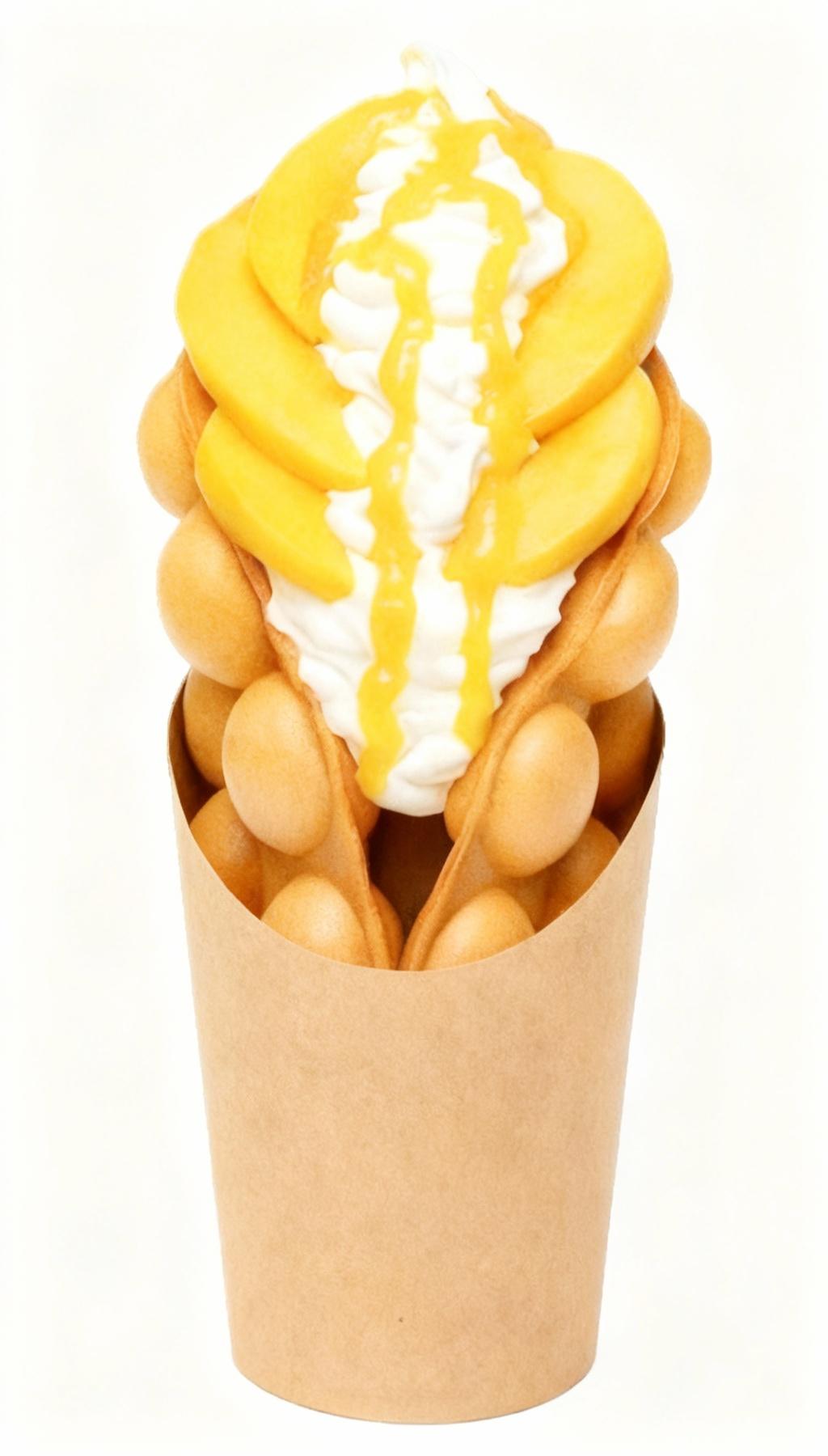 Состав: Гонконгская вафля (мука пшеничная, яйца куриные, молоко коровье 3,5%, вода, разрыхлитель, масло сливочное, сахар, соль), манго свежий, манговый топпинг, сливки коровьи 33%. Вес: 230 г. КБЖУ: 715 kcal. 230 гр. Белки: 11 г Жиры: 36 г Углеводы: 86 г