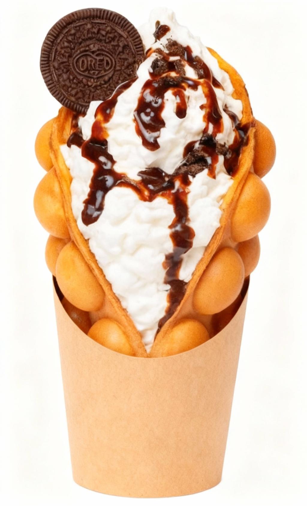 Состав: Гонконгская вафля (мука пшеничная, яйца куриные, молоко коровье 3,5%, вода, разрыхлитель, масло сливочное, сахар, соль), шоколадный соус, печенье Орео, сливки коровьи 33%. Вес: 230 г. КБЖУ: 715 kcal. 230 гр. Белки: 11 г Жиры: 36 г Углеводы: 86 г